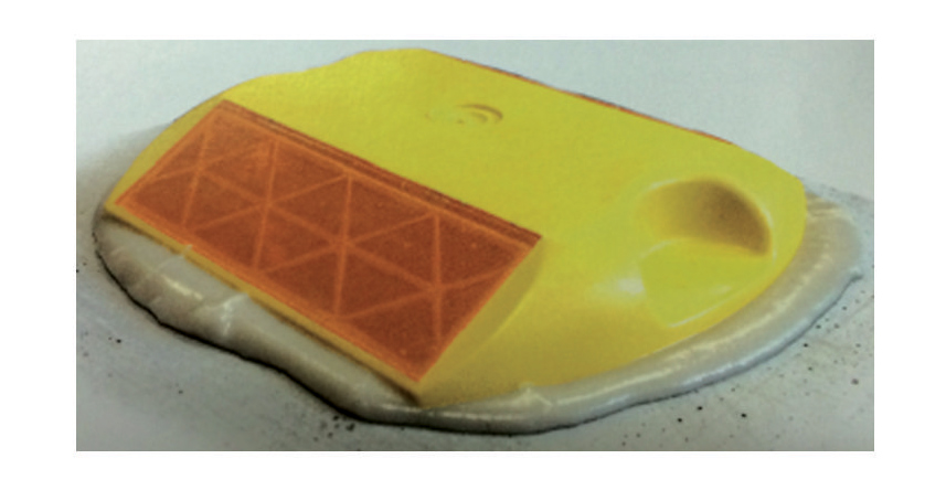 4)、反光片采用了超声波技术粘接,使到反光片与道钉体有机的结合为一体,不易脱落(同类产品是用胶水粘接)。